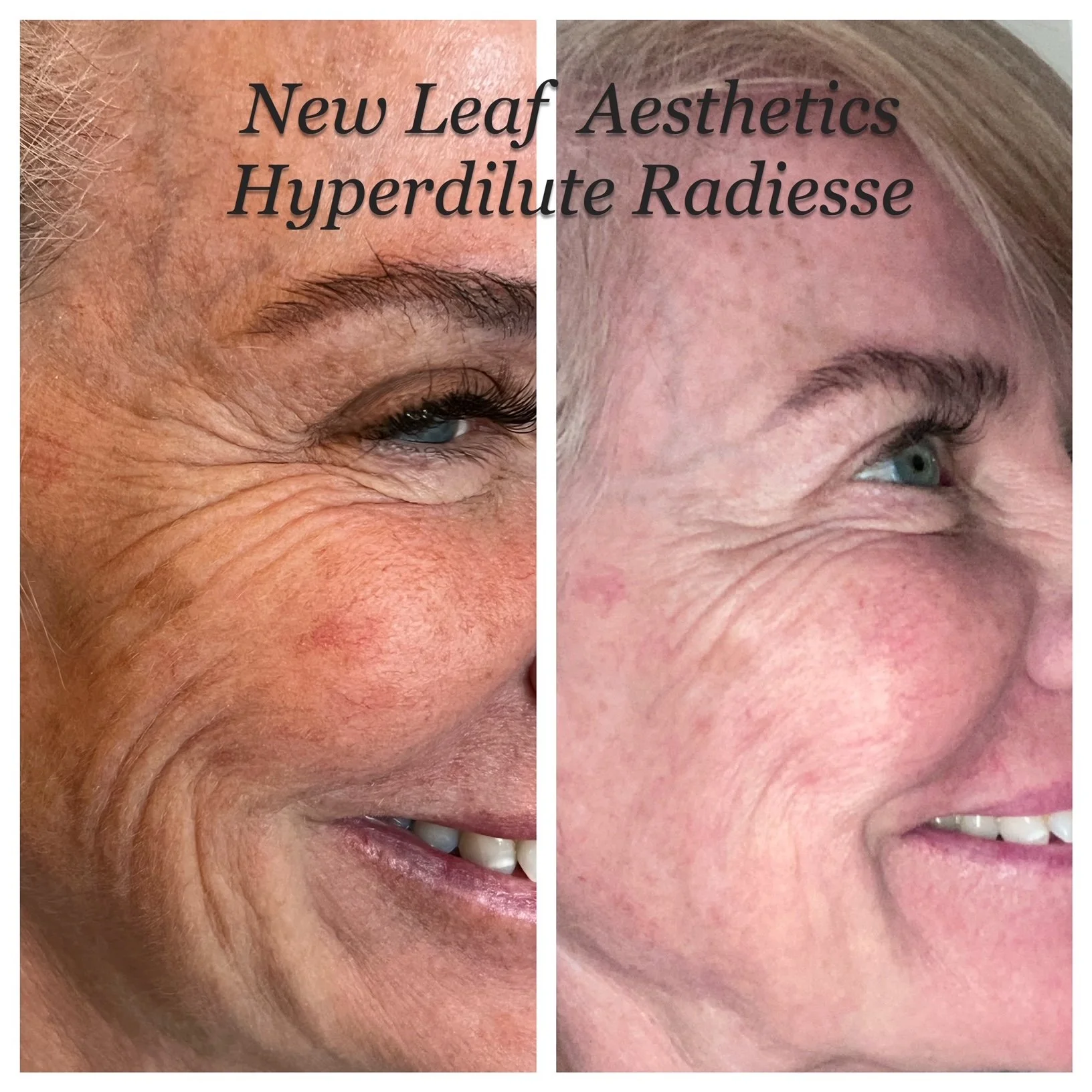 Pictures taken before and after two treatments of Hyperdilute Radiesse